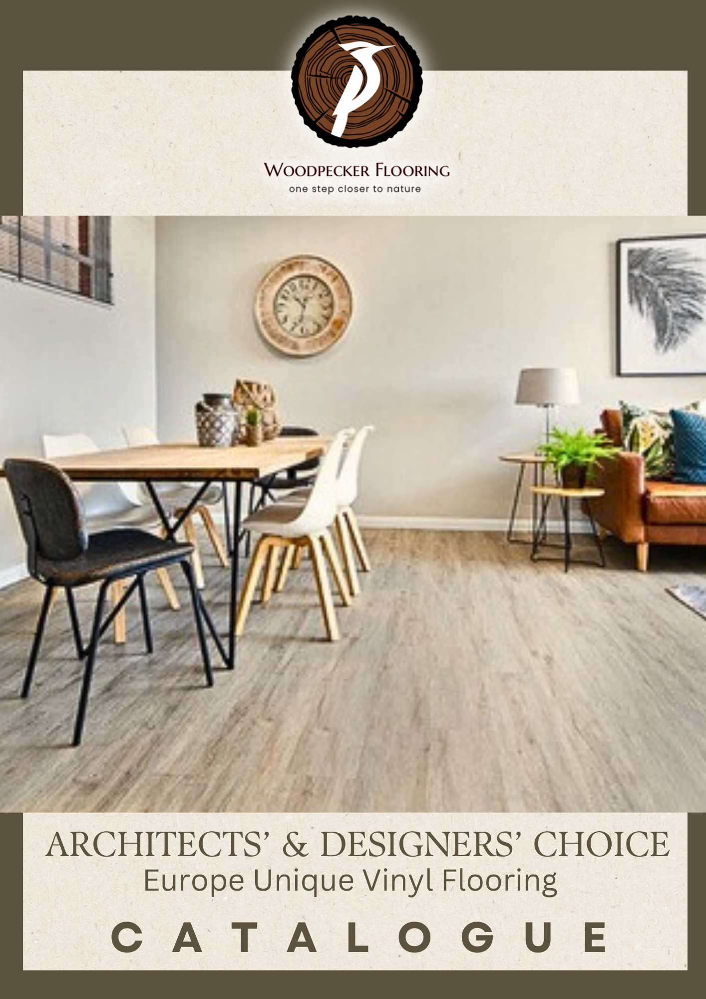 Woodpecker Flooring offers high-quality engineered wood, solid wood, and waterproof wood-design floors crafted from sustainably sourced materials. Their e-catalogs showcase collections, colours, finishes, and installation details, along with care guidelines and technical specifications. The catalogs provide a clear overview of styles such as plank, herringbone, and chevron for easier selection.