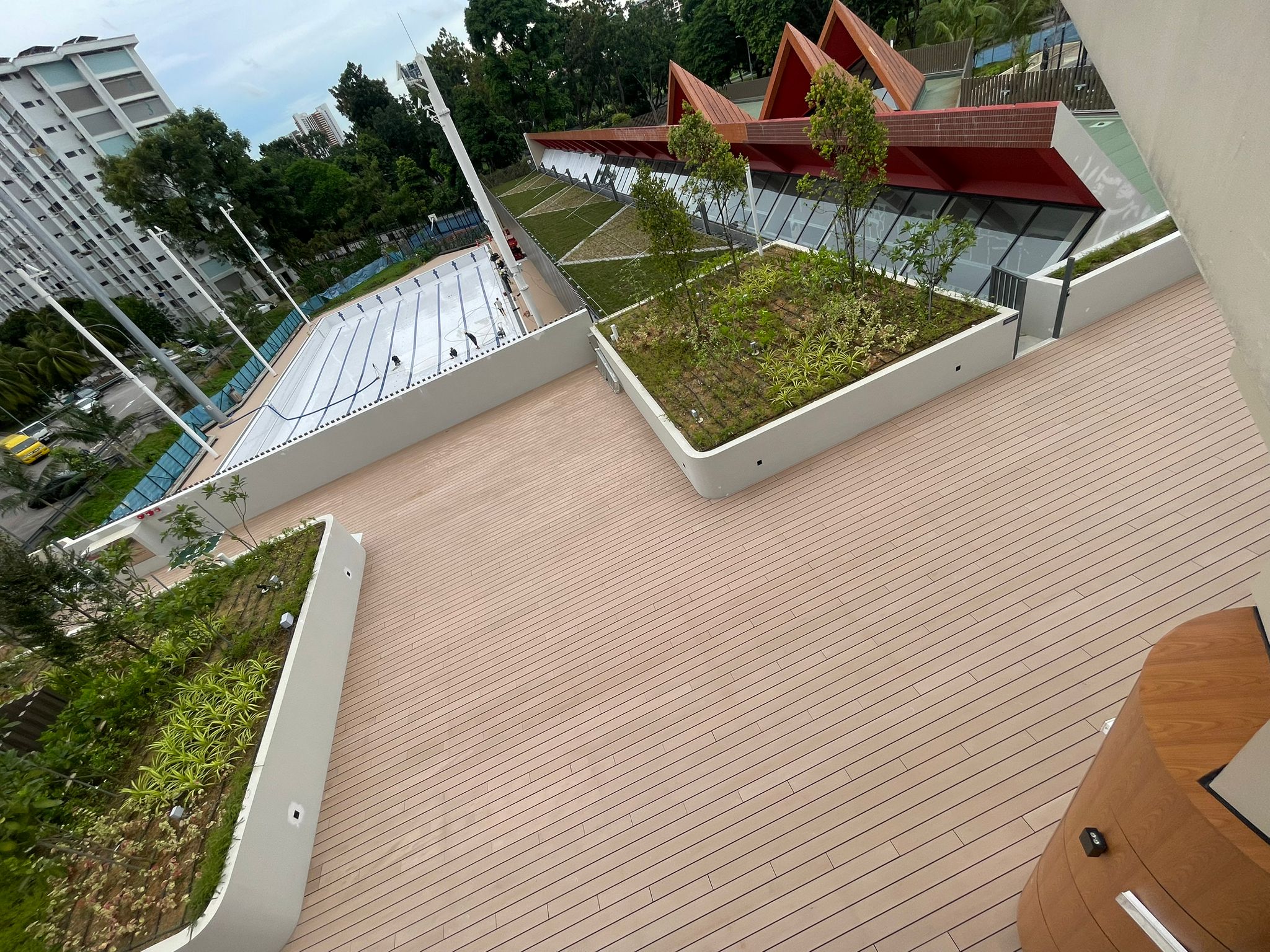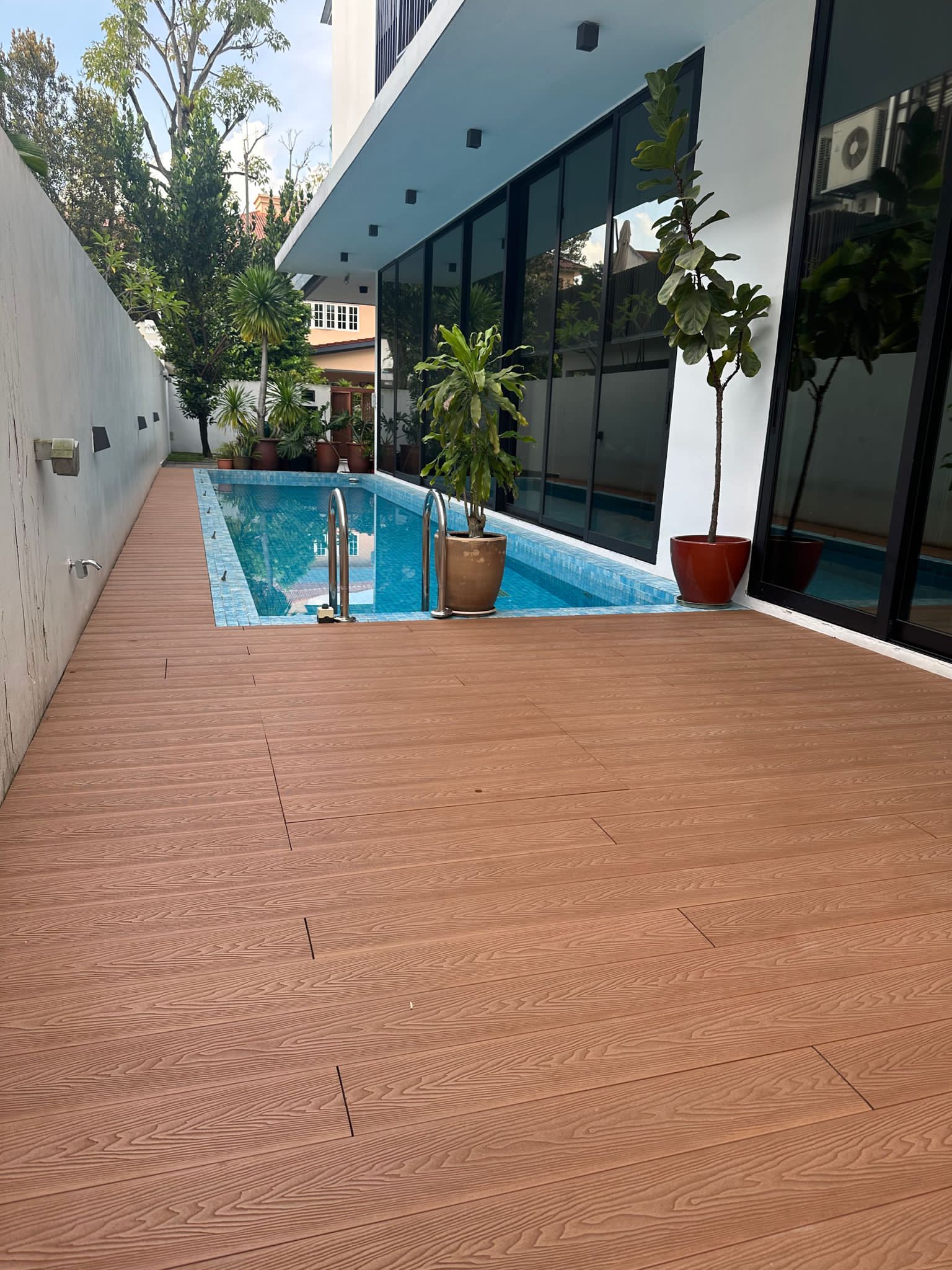 Wood-plastic composite decking is composed of wood fiber and plastic which is suitable for outdoor flooring types.